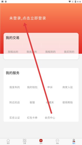2、在个人中心页面,看到未登录提示后,点击立即登录选项,进入账号登录流程。