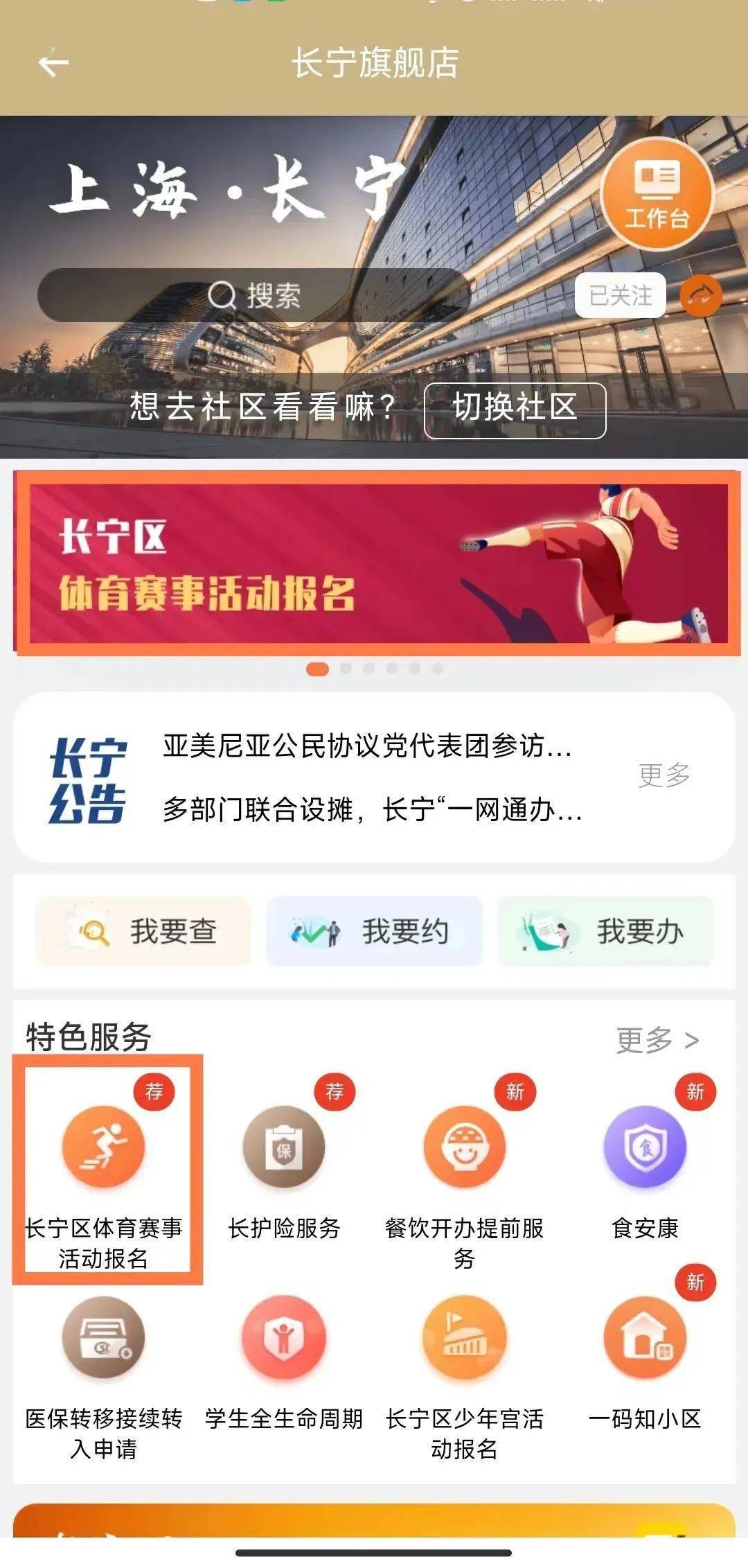 2. 点击“长宁区体育赛事活动报名”填写报名信息并抢票。本次开放活动名额有限,先到先得。