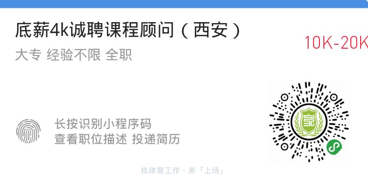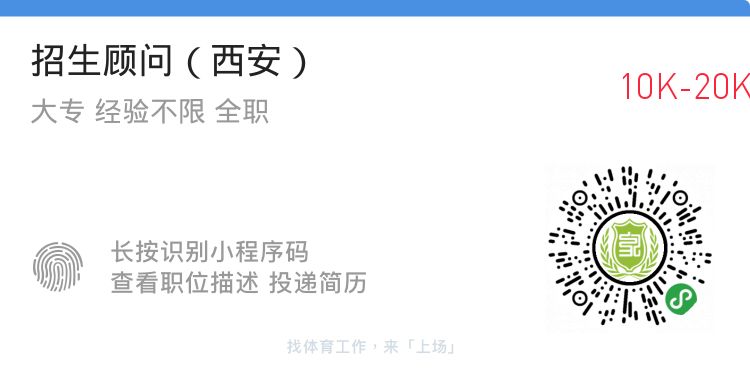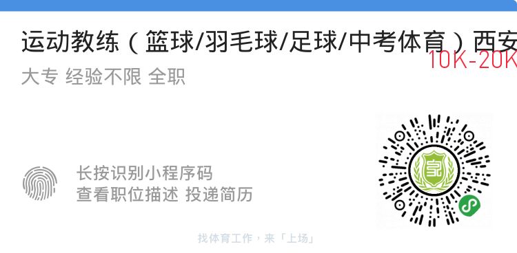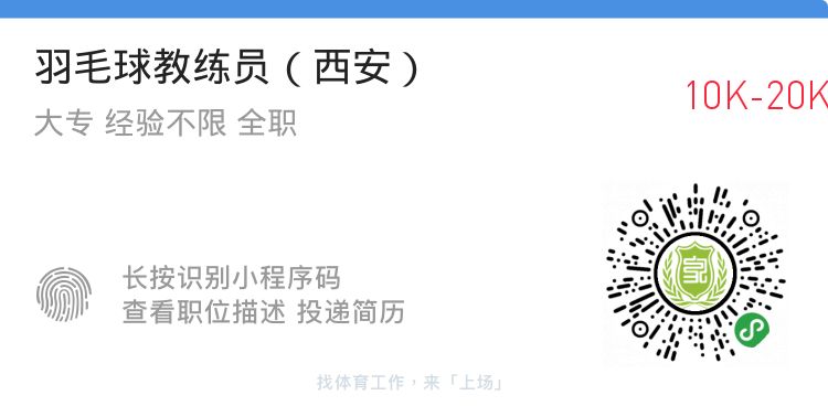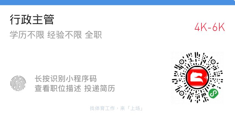 有招聘需求的公司也可以与我们联系,后台回复“人才”即可获取企业免费入驻方式;求职的小伙伴可以添加体育圈神探微信( ID:ecoschh )了解更多体育招聘信息。文末有地方招聘群入群方式。
