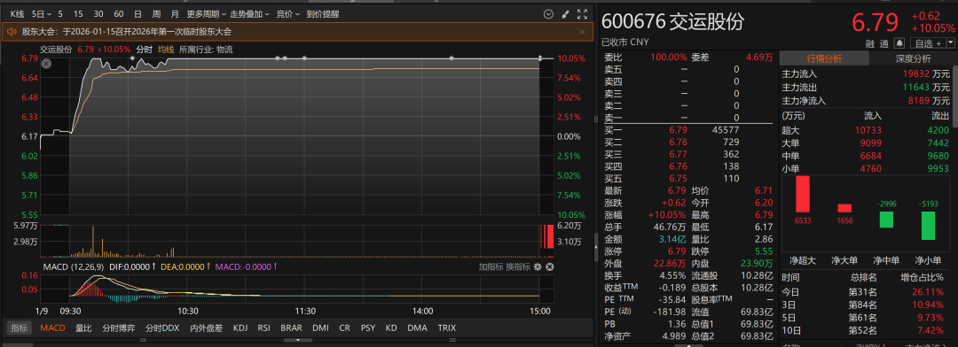 目前交运股份主营业务为道路货运与物流服务、汽车零部件制造与销售服务、乘用车销售与汽车后服务等。2023年、2024年及2025年前三季度,交运股份分别实现营业收入52.10亿元、44.37亿元、32.30亿元,扣非归母净利润分别为-1.74亿元、-4.29亿元、-2.16亿元。